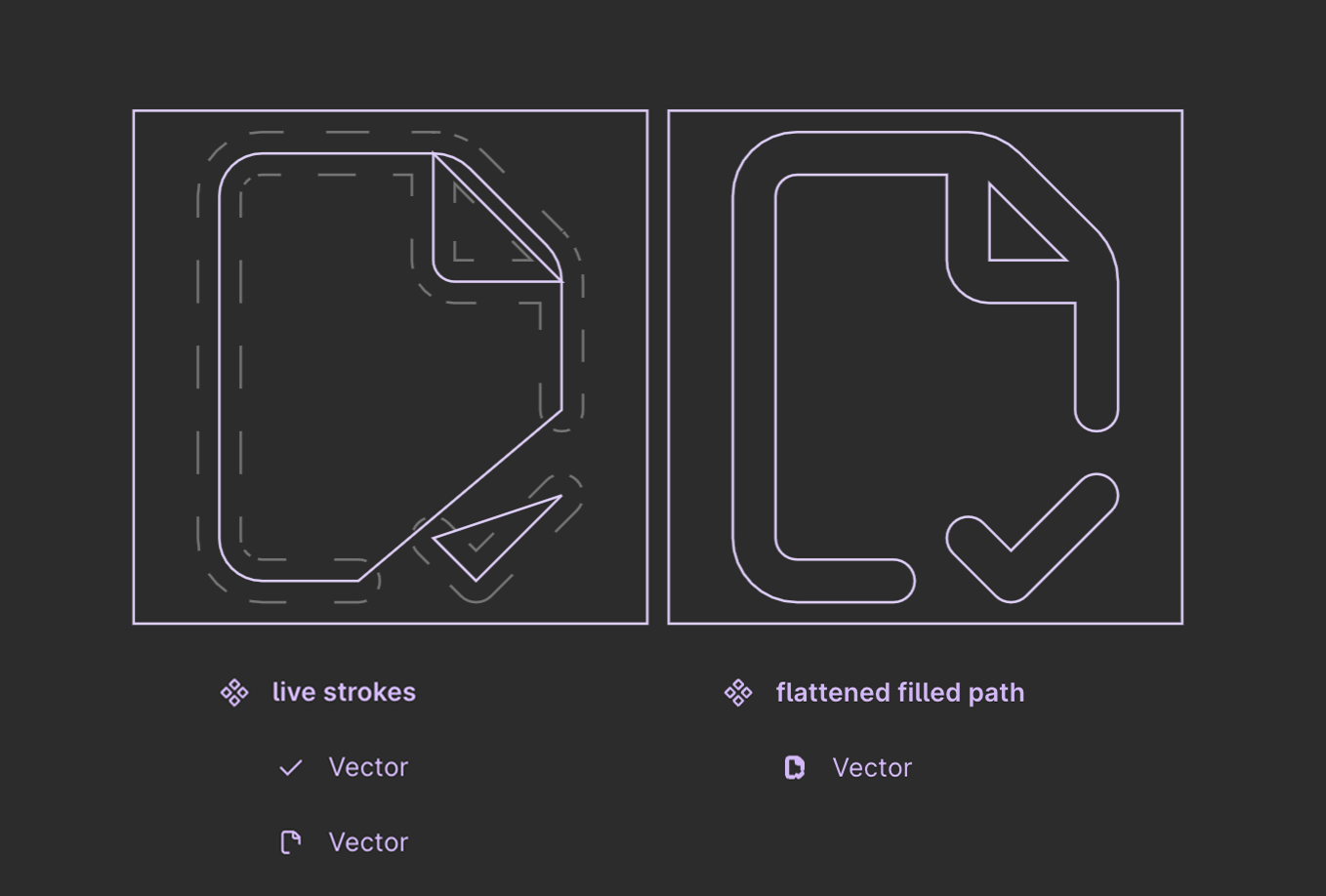 "But Alice, having both live strokes and flattened filled paths would be a terrible idea! You'd basically guarantee that you'd lose color overrides when swapping icons. Different architecture... color applied to stroke sometimes, and fill other times. Madness!" This is what I'd imagine a designer would tell me.
